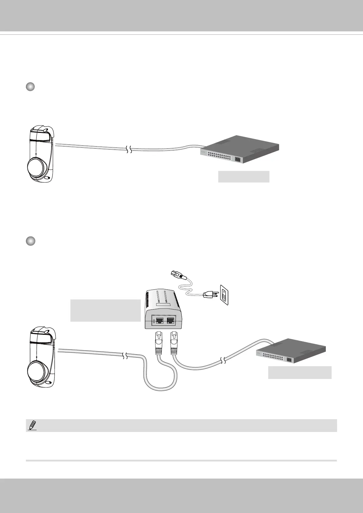 Use a PoE power injector (optional) to connect between the Network Camera and a non-