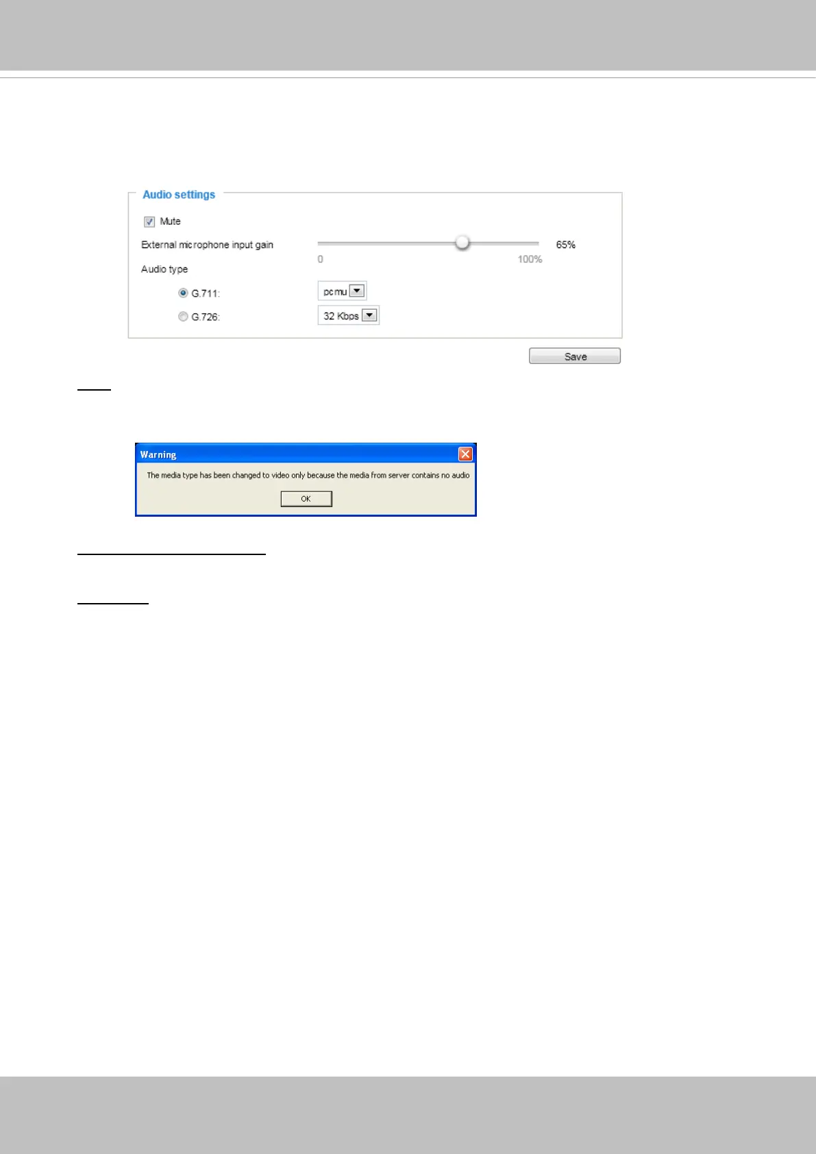 Mute: Select this option to disable audio transmission from the Network Camera to all clients. Note