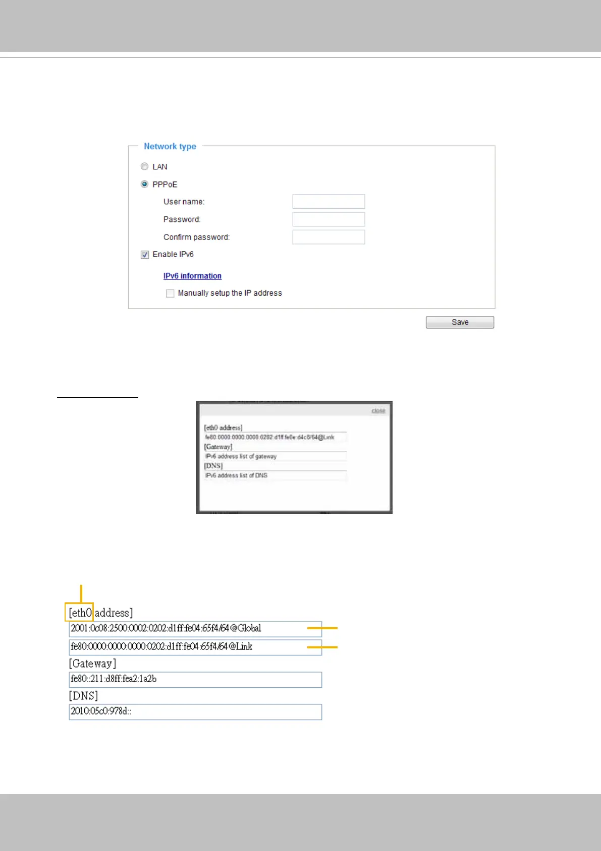 IPv6 Information: Click this button to obtain the IPv6 information as shown below.