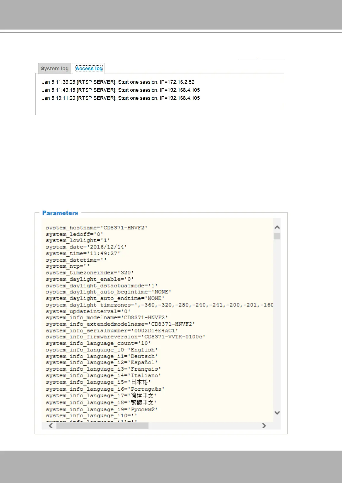 administrators) in a chronological order. The access log is stored in the Network Camera’s buffer