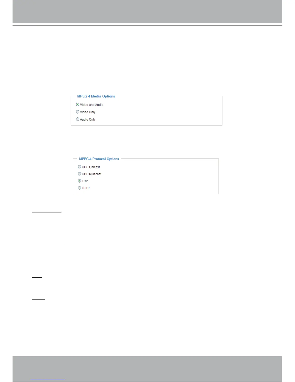 Select to stream video or audio data. This works only when the video mode is set to MPEG-4.
