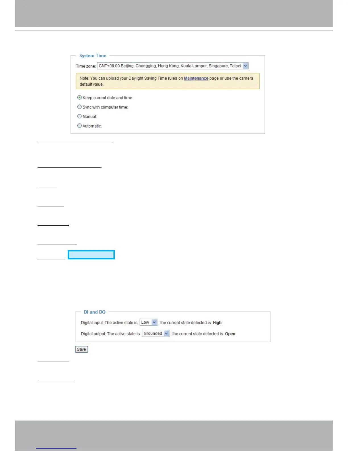 Digital input: Select High or Low to define normal status of the digital input. The Network Camera will