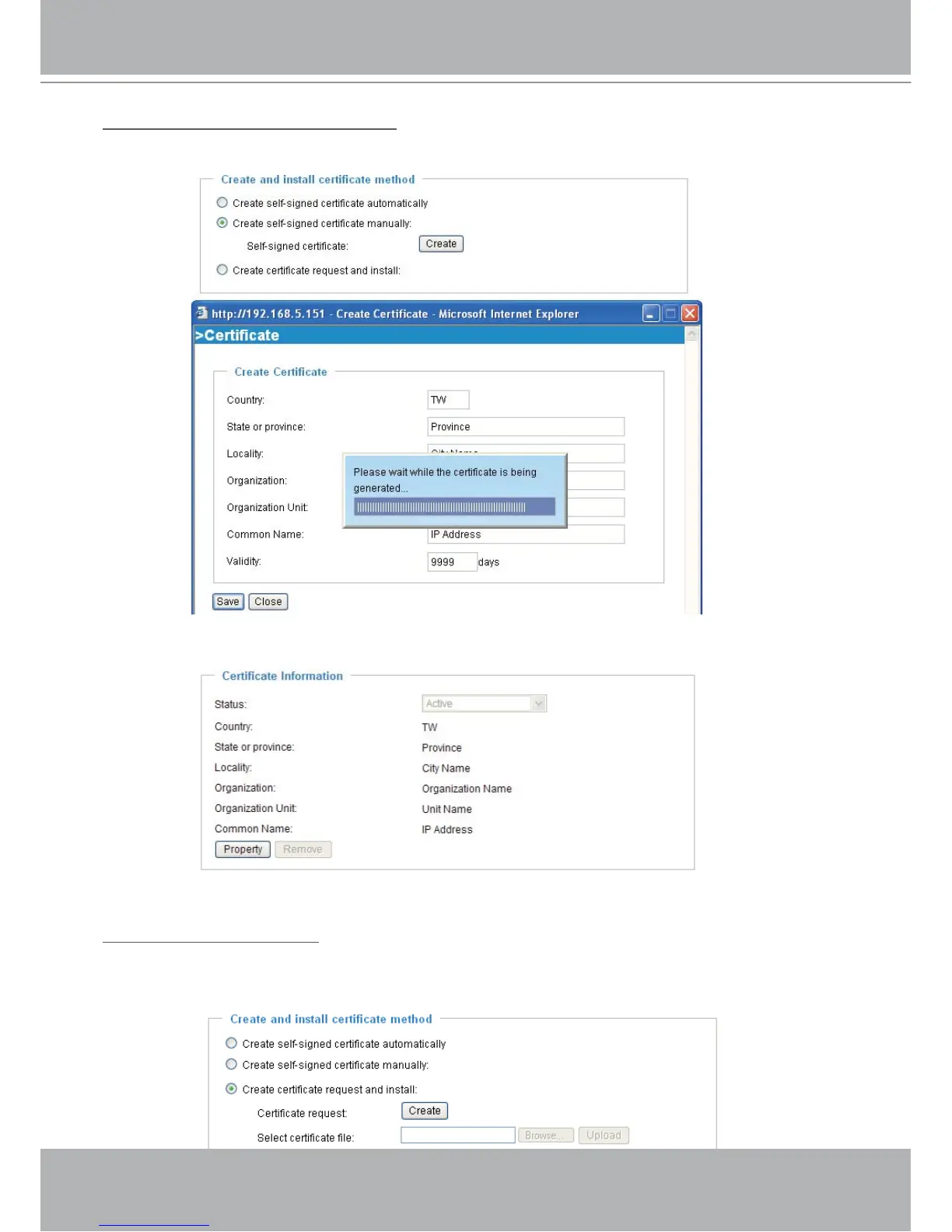 Create certificate and install : Select this option if you want to create a certificate from a certificate