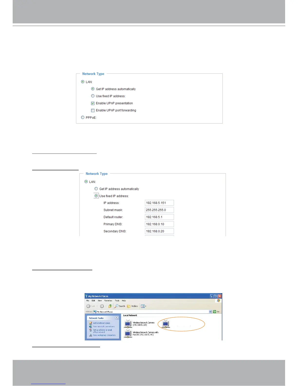 This section explains how to configure wired network connection for the Network Camera.
