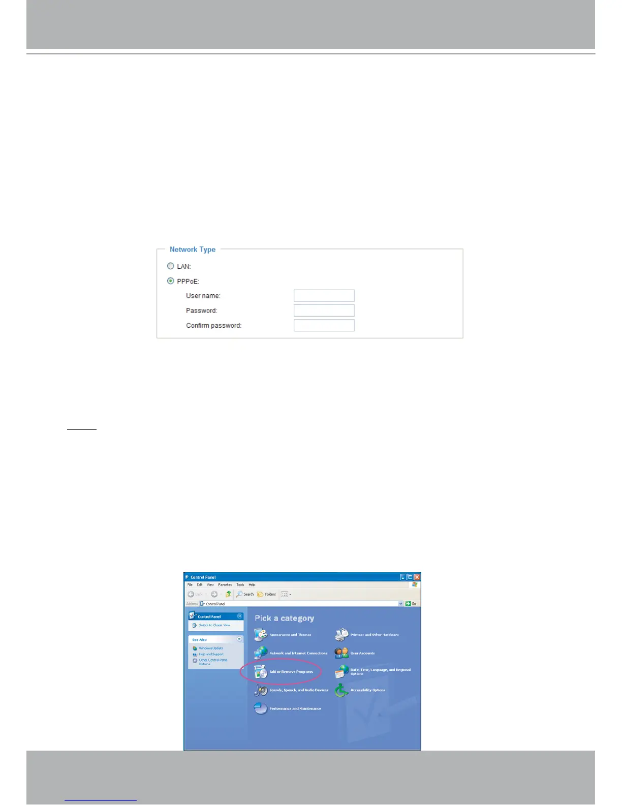 4. Go to Configuration > Network > Network Type. Select PPPoE and enter the user name and password