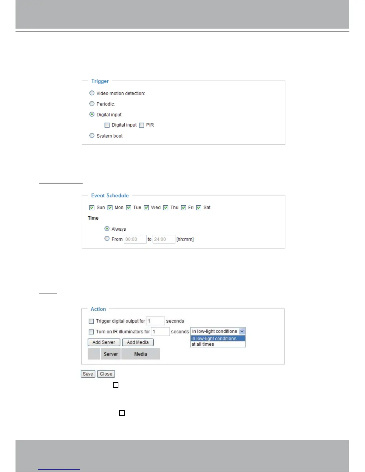 This option allows the Network Camera to trigger when the power of Network Camera is disconnected.