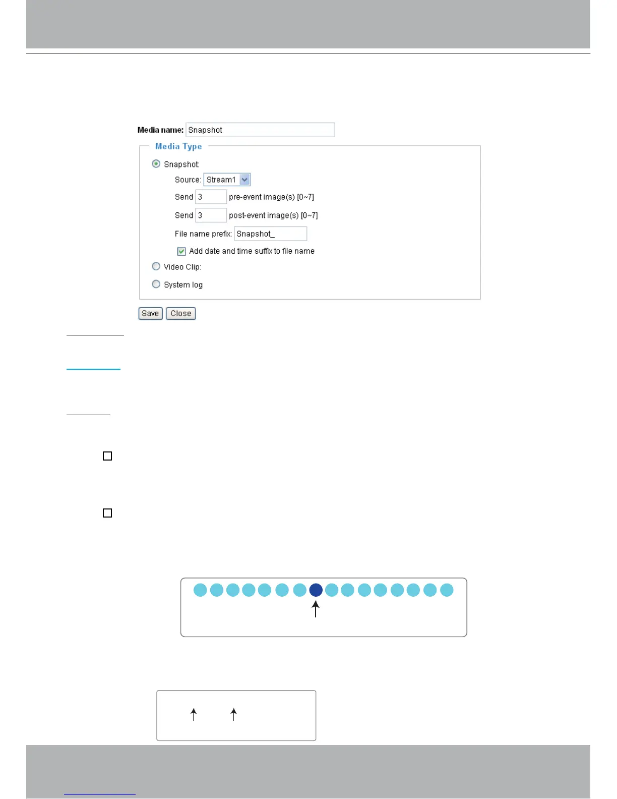 There are three choices of media types available: Snapshot, Video Clip, and System log.