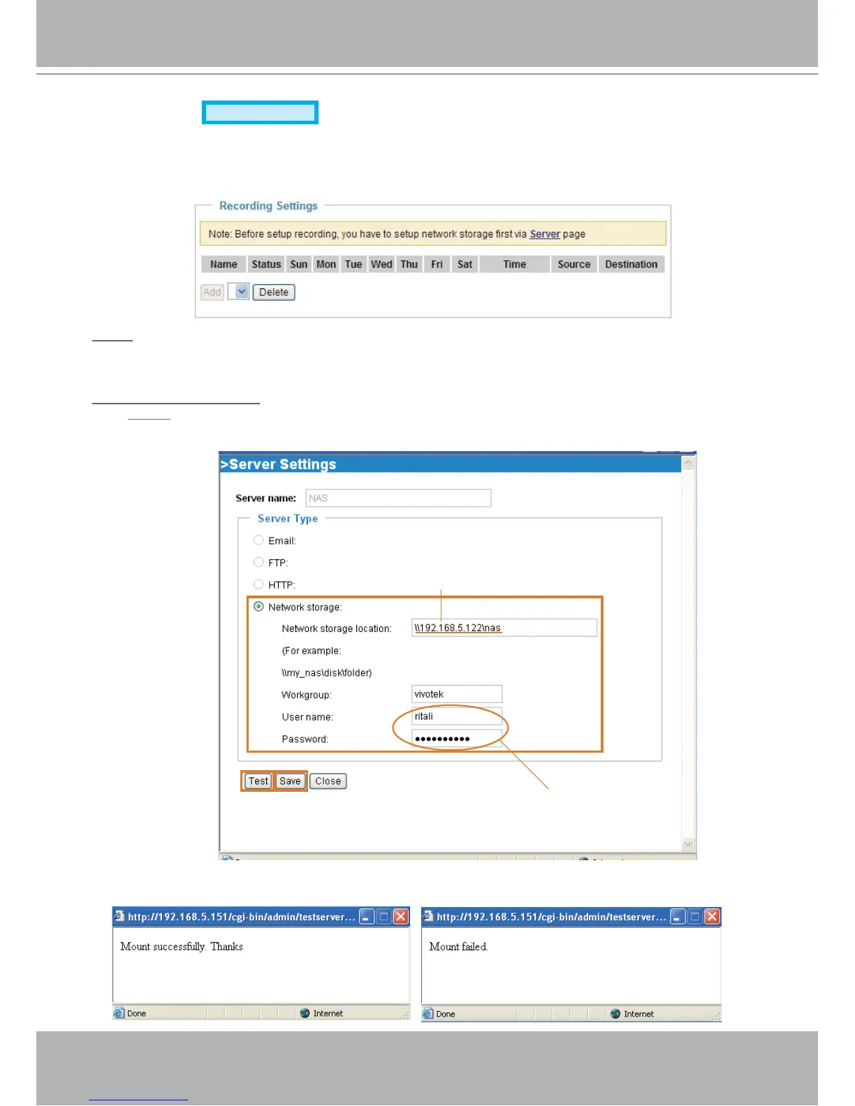 Before setting up this page, please set up the Network Storage first.