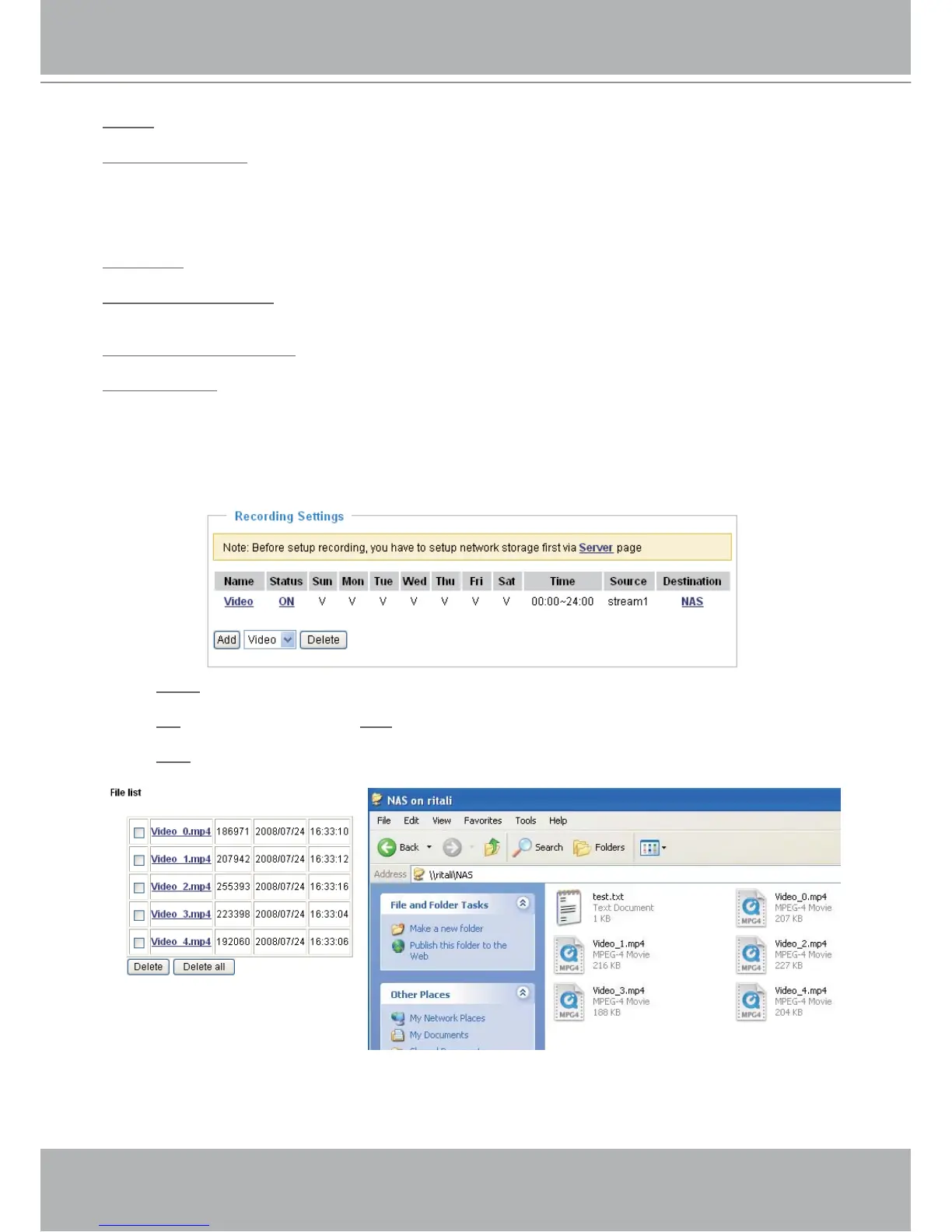 The recorded files on Network Storage