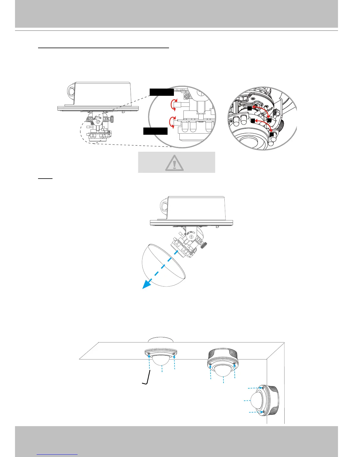 Attach the dome cover to camera� Secure the three dome screws with a screwdriver� Finally,