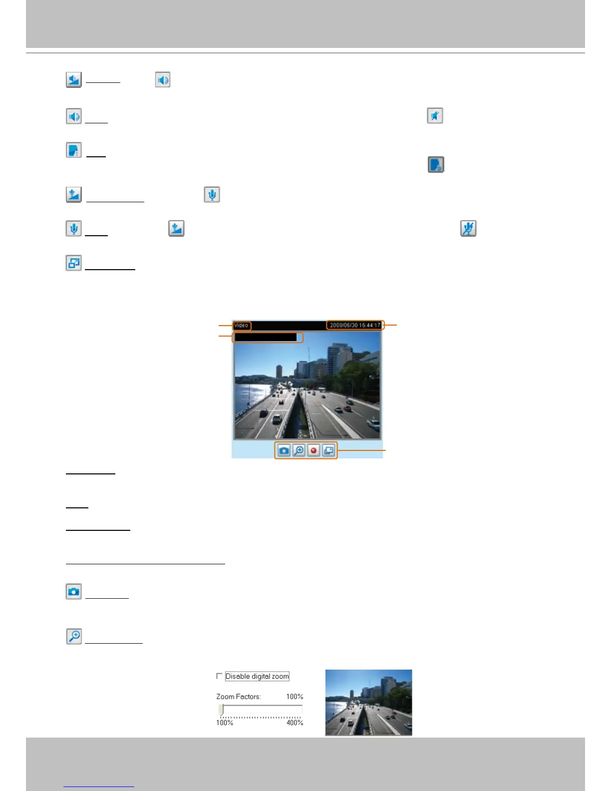 Video and Audio Control Buttons: Depending on the Network Camera model and Network Camera