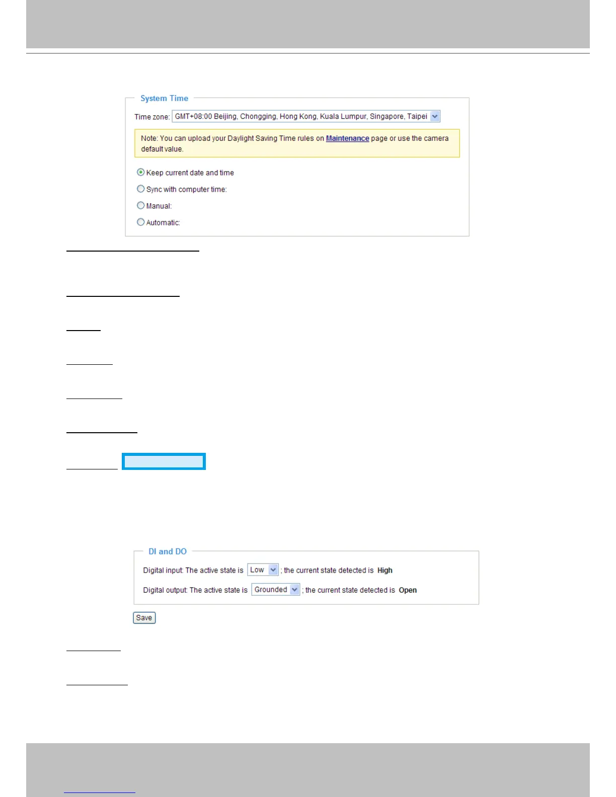 Daylight Savings Time rules on the Maintenance page, please refer to Upload / Export Daylight Saving