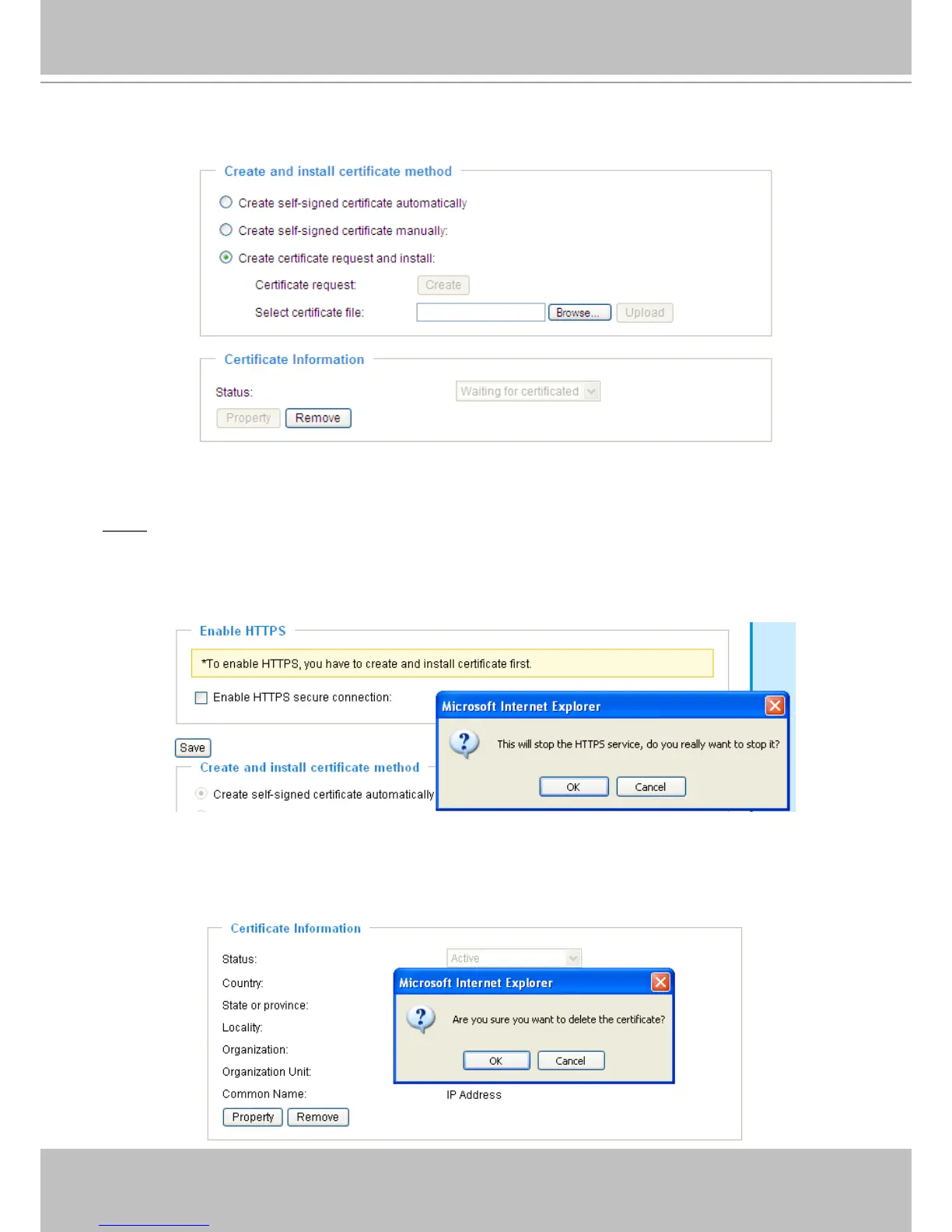 ► If you want to create and install other certicates, please remove any existing ones. To remove the