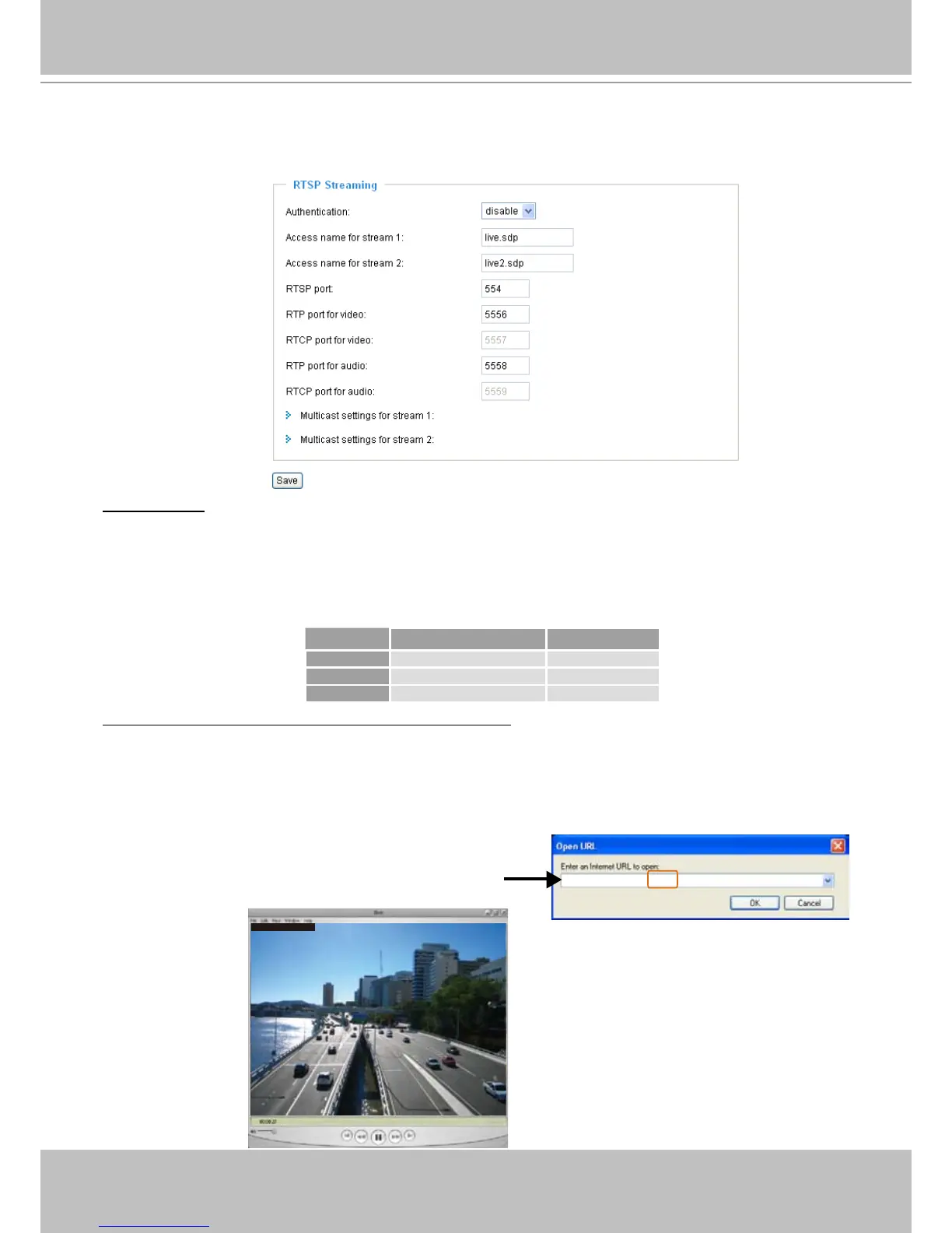 For example, when the access name for stream 1 is set to live�sdp: