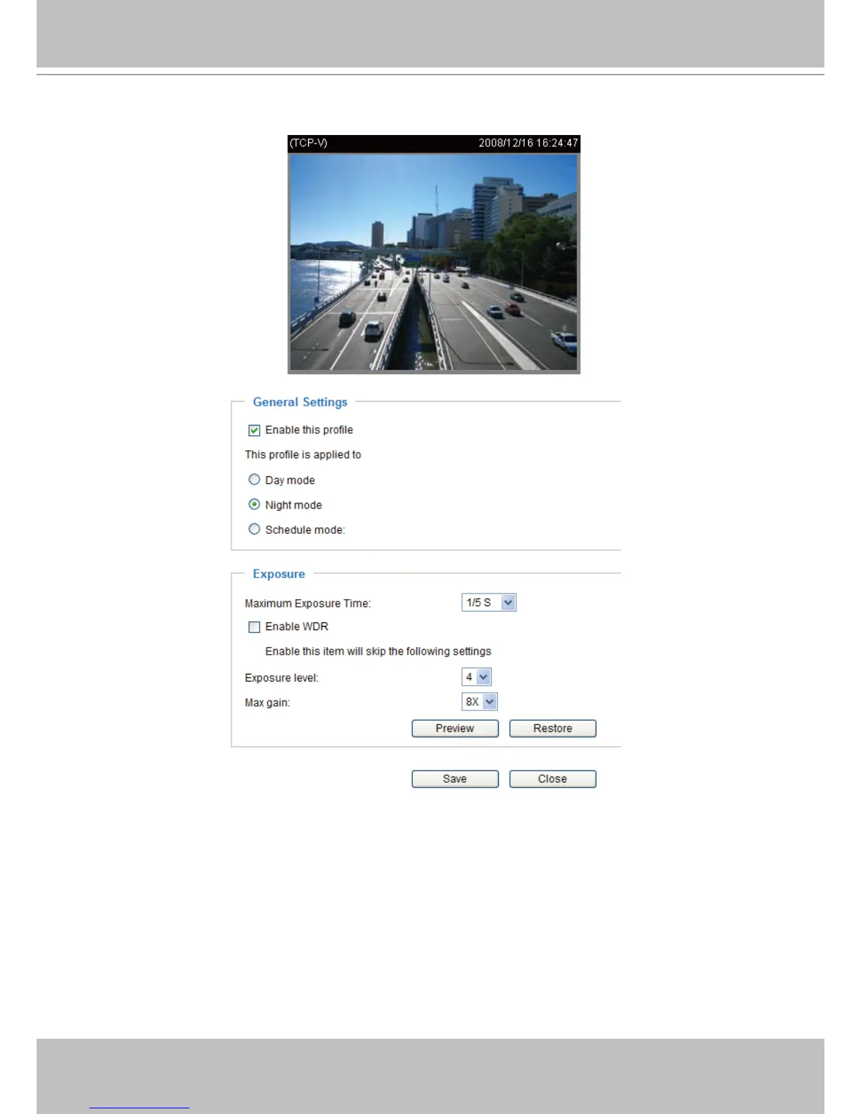 If you want to congure another sensor setting for day/night/schedule mode, please click Prole to open