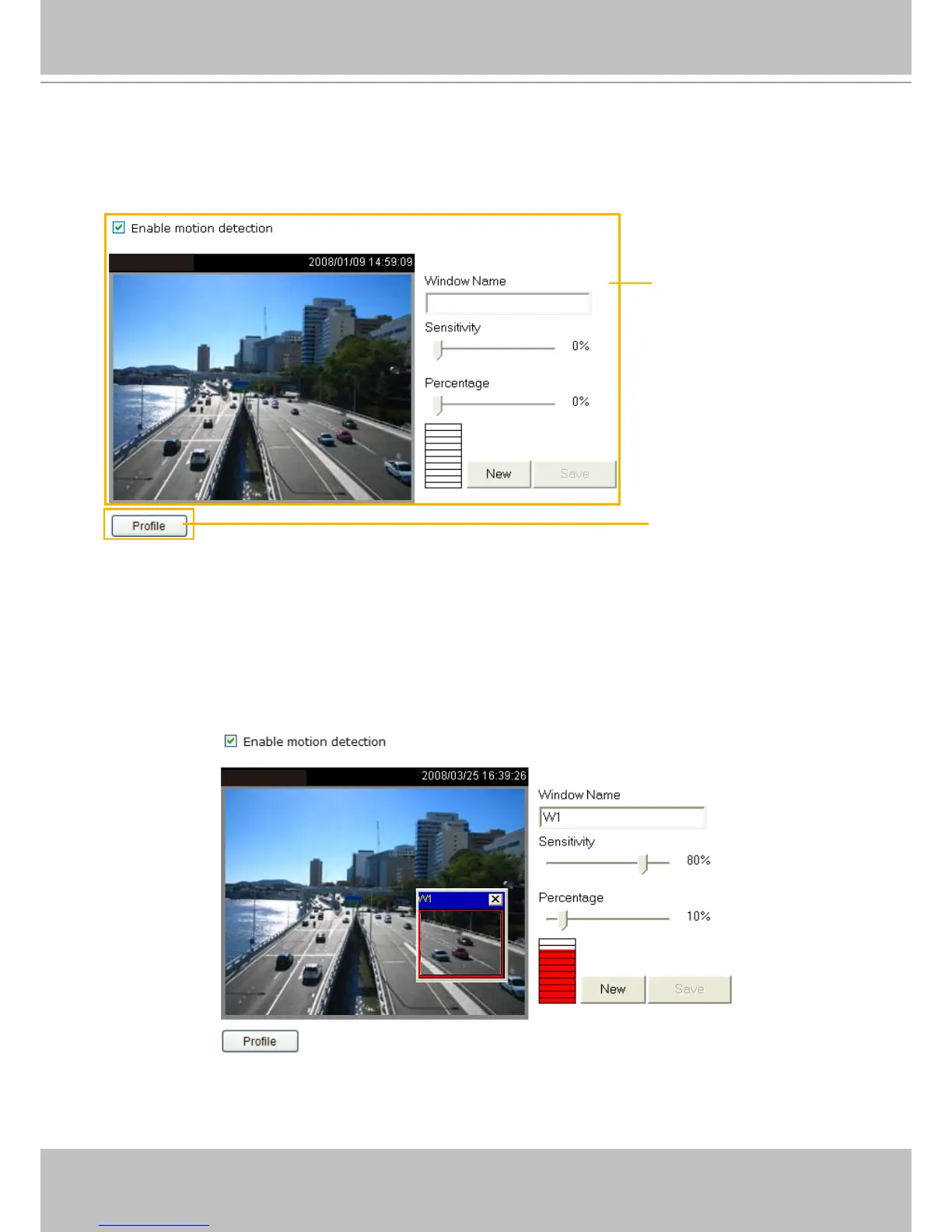 1� Click New to add a new motion detection window�
