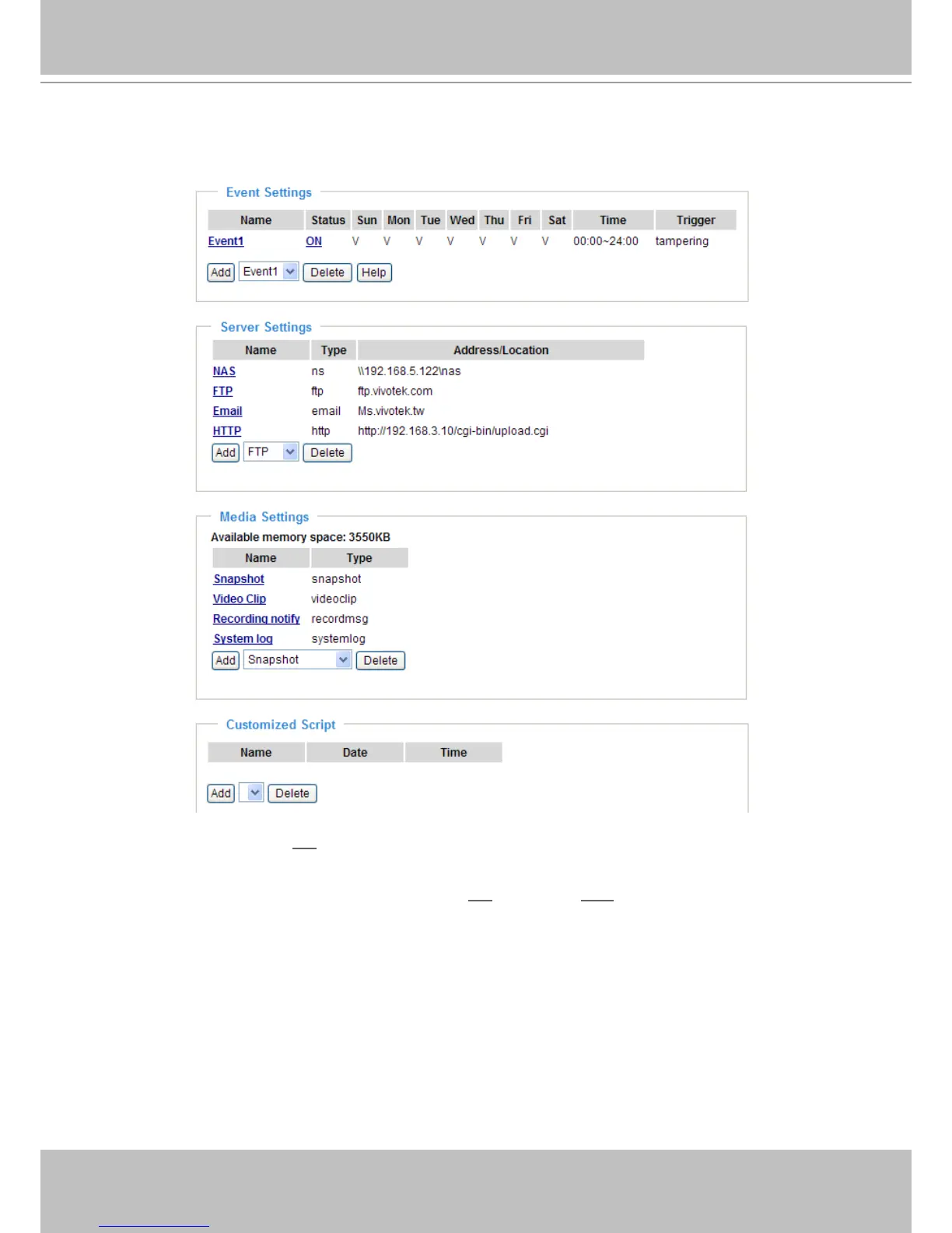Note that only when the media setting is not being applied to an event setting can it be deleted�