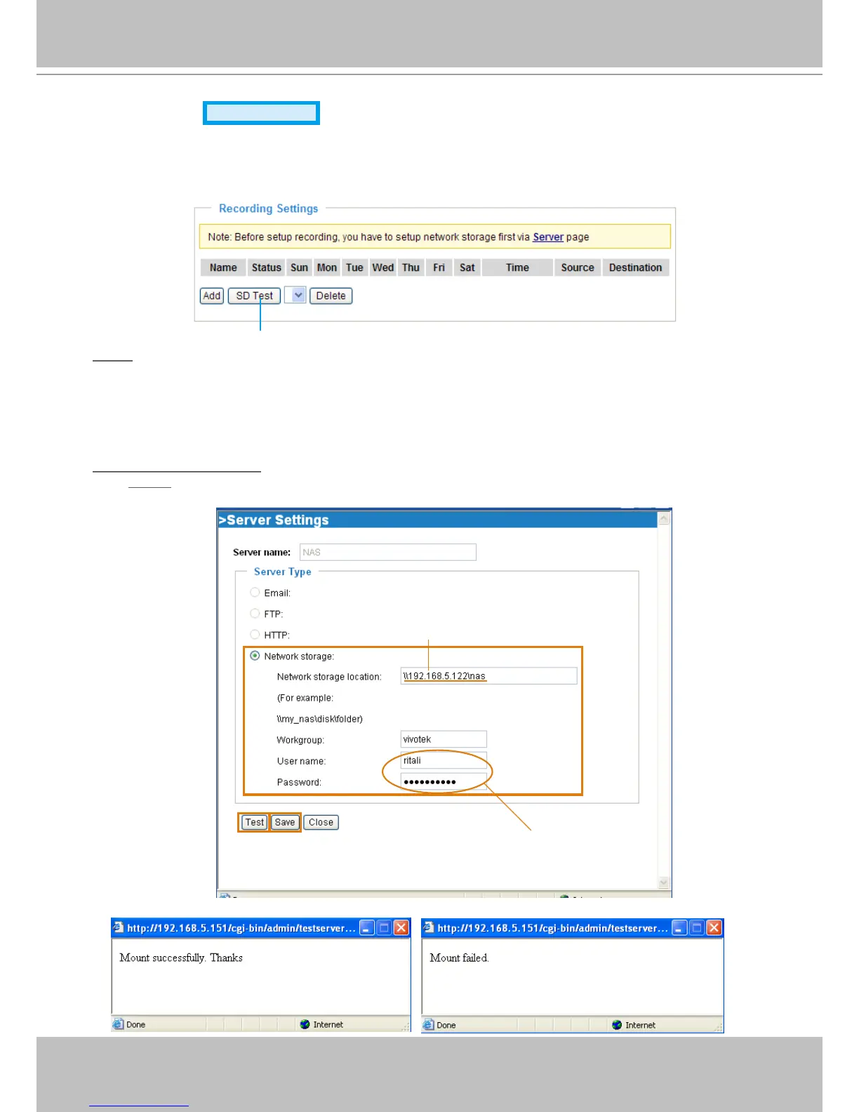 ► Before setting up this page, please set up the Network Storage on the Server Settings page rst.