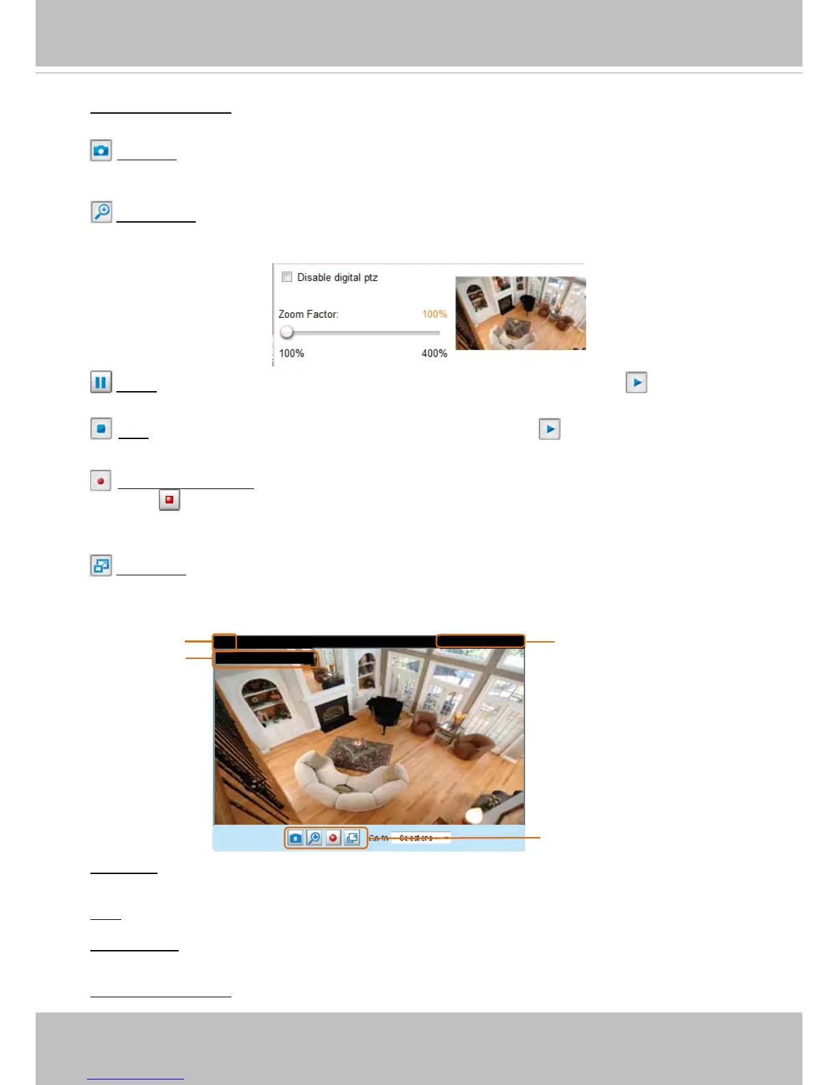 Video Control Buttons: Depending on the Network Camera model and Network Camera conguration,