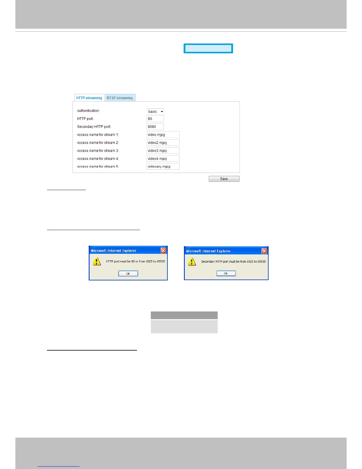HTTP port / Secondary HTTP port: By default, the HTTP port is set to 80 and the secondary HTTP