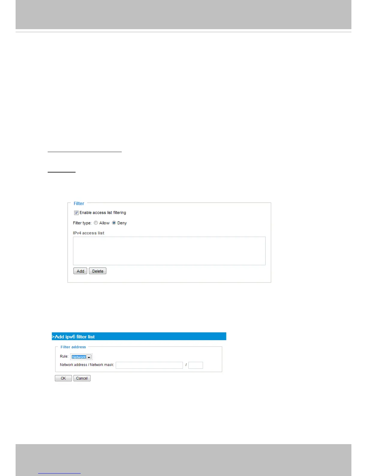 If IPv6 lter list is preferred, you will be prompted by the following window. Enter the IPv6 address