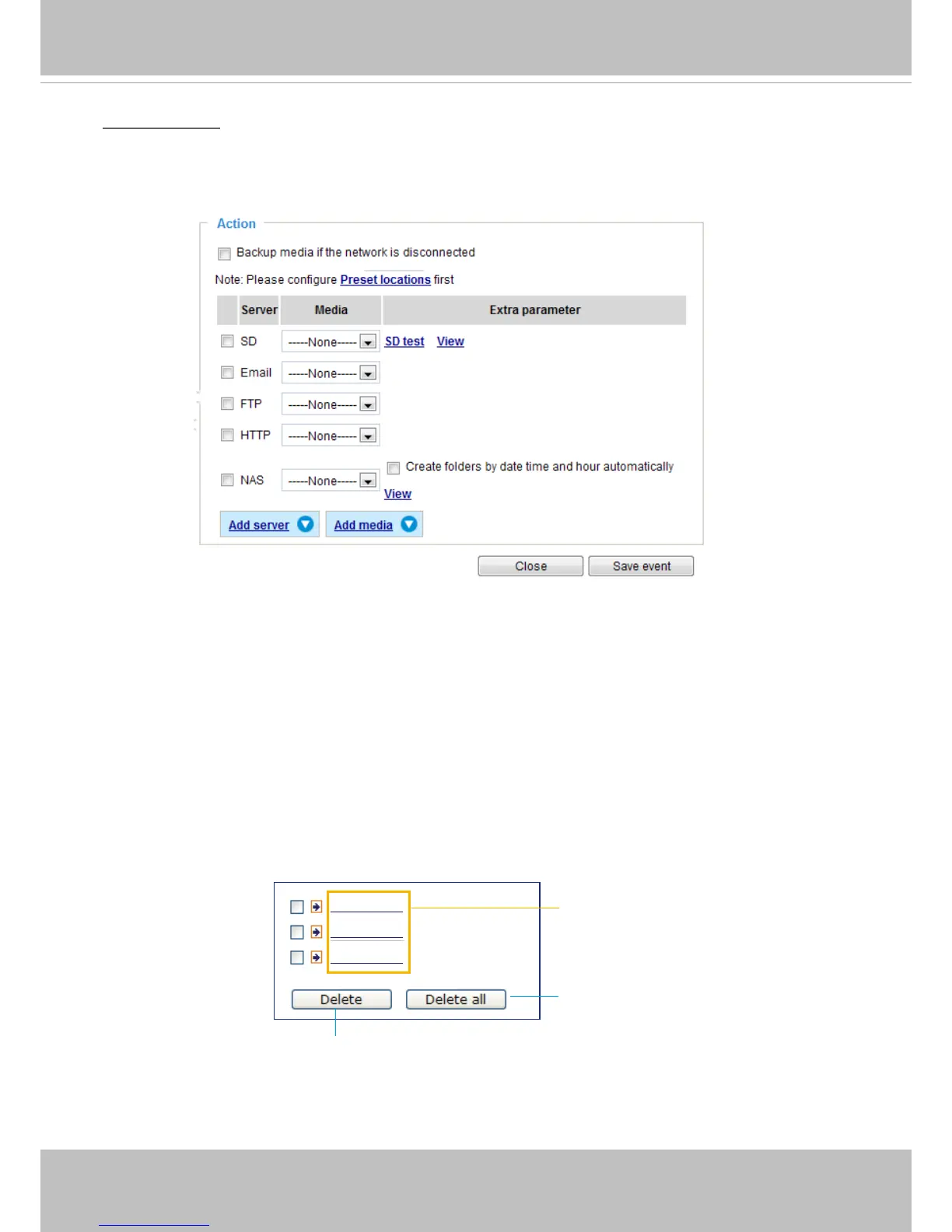 Select to send the media les to a network storage location when a trigger is activated. Please refer to