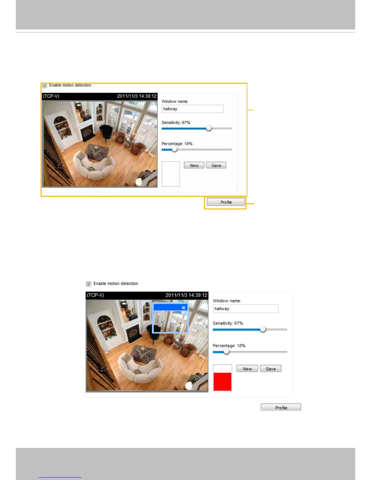 red bar rises. Meanwhile, the motion detection window will be outlined in red. Photos or videos can be