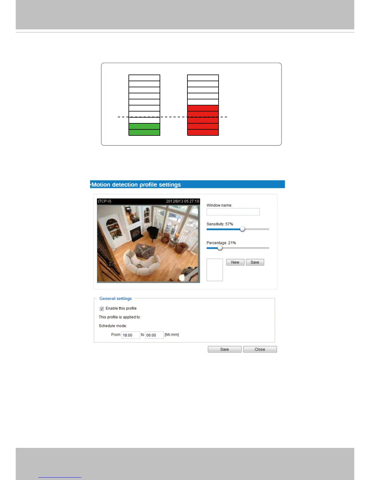the Motion Detection Prole Settings page as shown below. A total of three motion detection windows