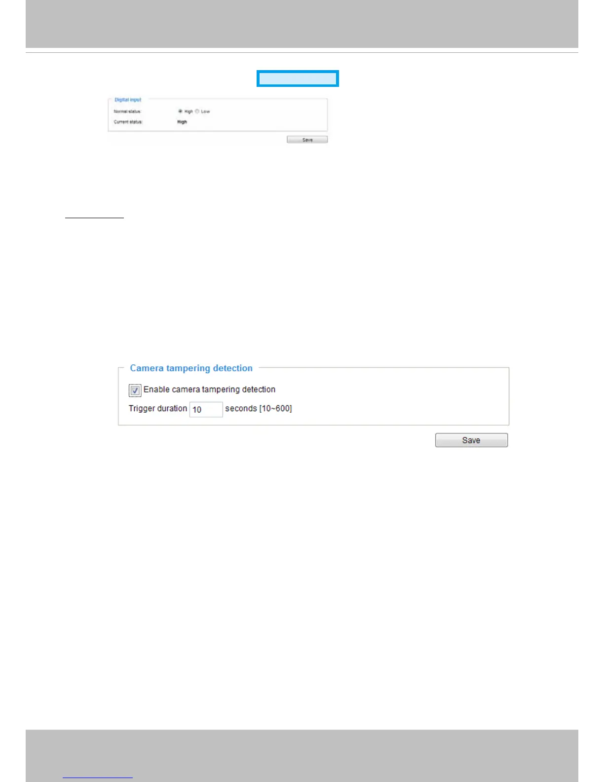 Digital input: Select High or Low to dene the "Normal status" for the digital input. The Network