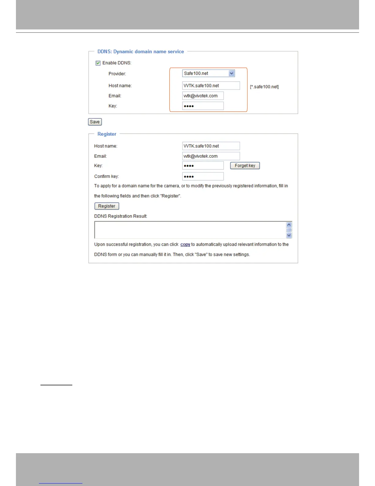 2. In the Register column, ll in the Host name, Email, Key, and Conrm Key; then click Register� After a
