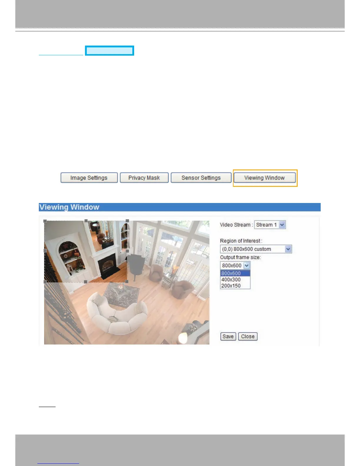 ■ Stream 2: Users can dene the "Region of Interest" (viewing region) and the "Output Frame Rate" (size