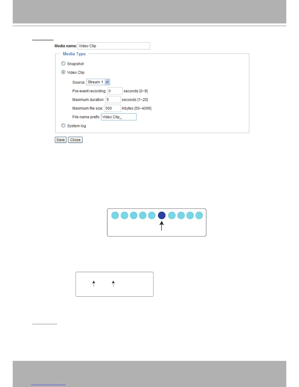 For example, if pre-event recording is set to 5 seconds and the maximum duration is set to 10