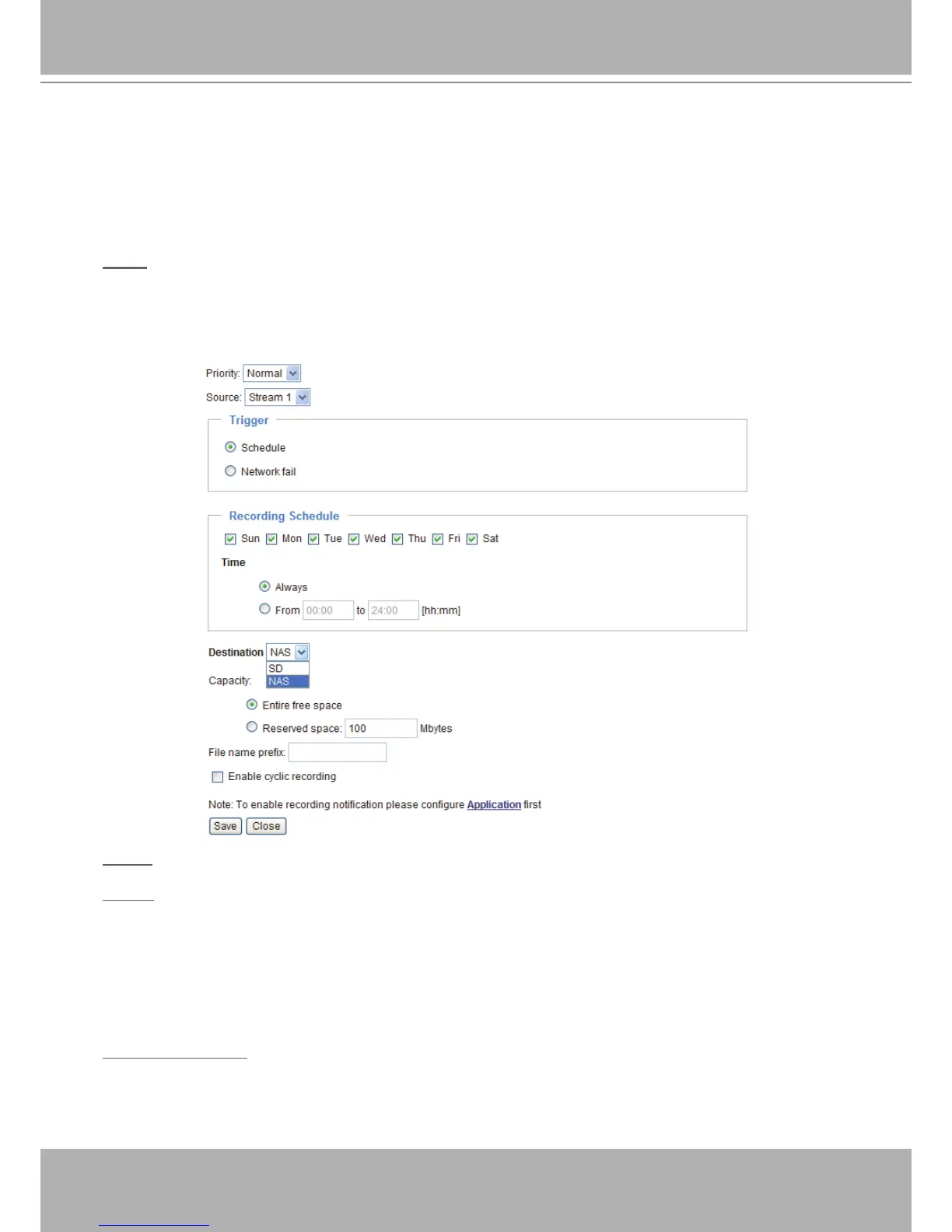 ■ Schedule: The server will start to record les on the local storage or network storage (NAS).