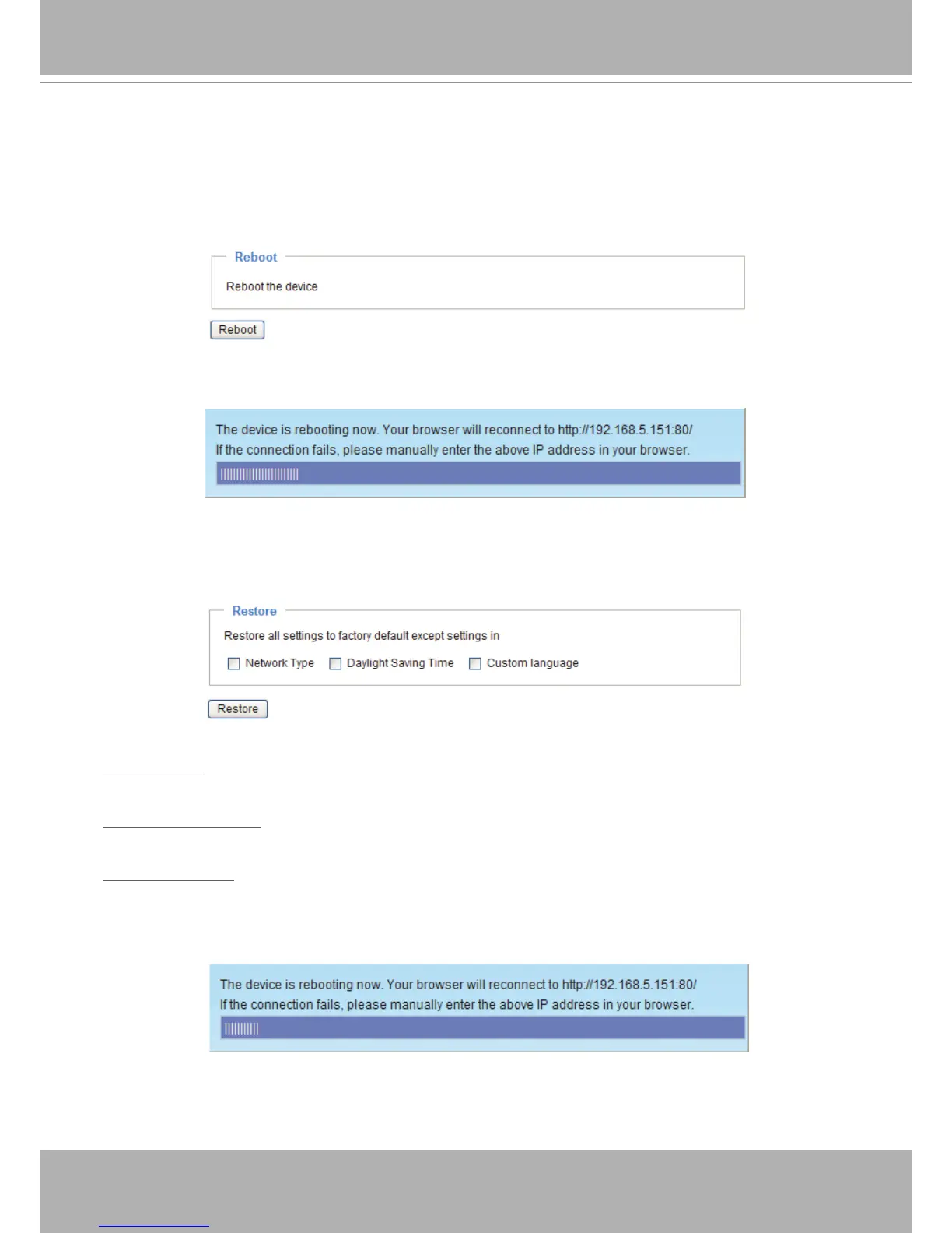 This feature allows you to reboot the Network Camera, which takes about one minute to complete� When