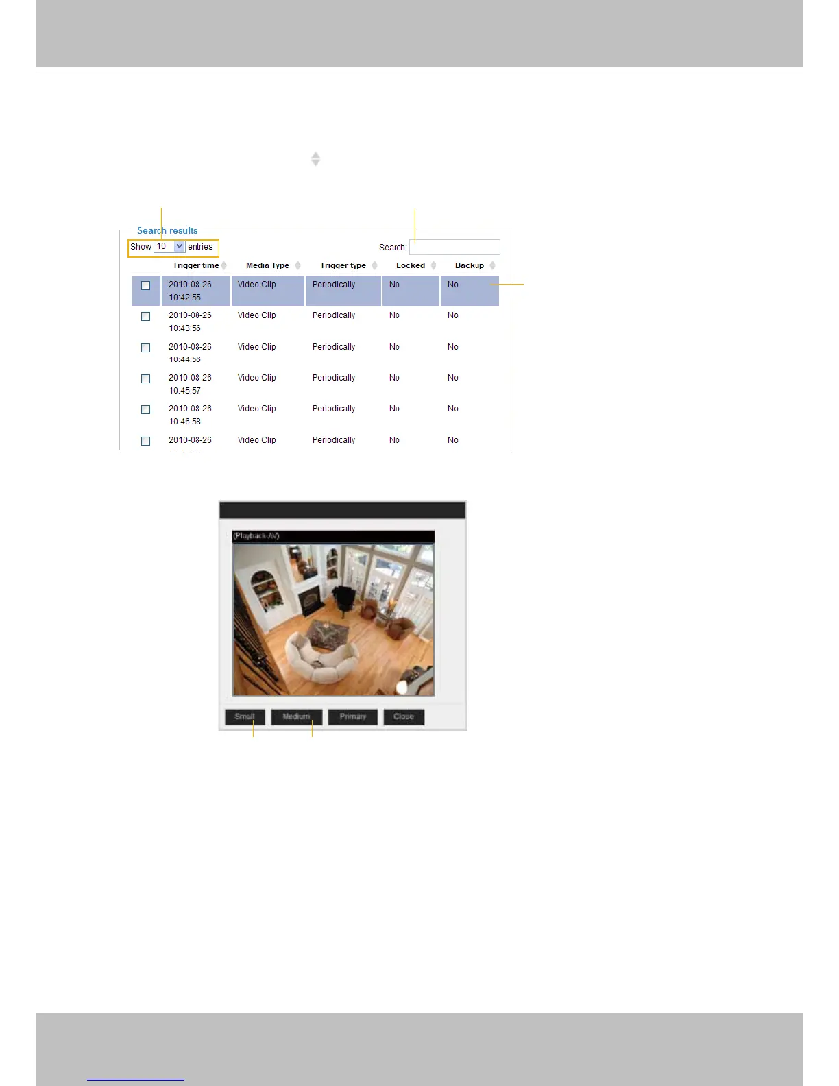 The following is an example of search results. There are four columns: Trigger time, Media type,