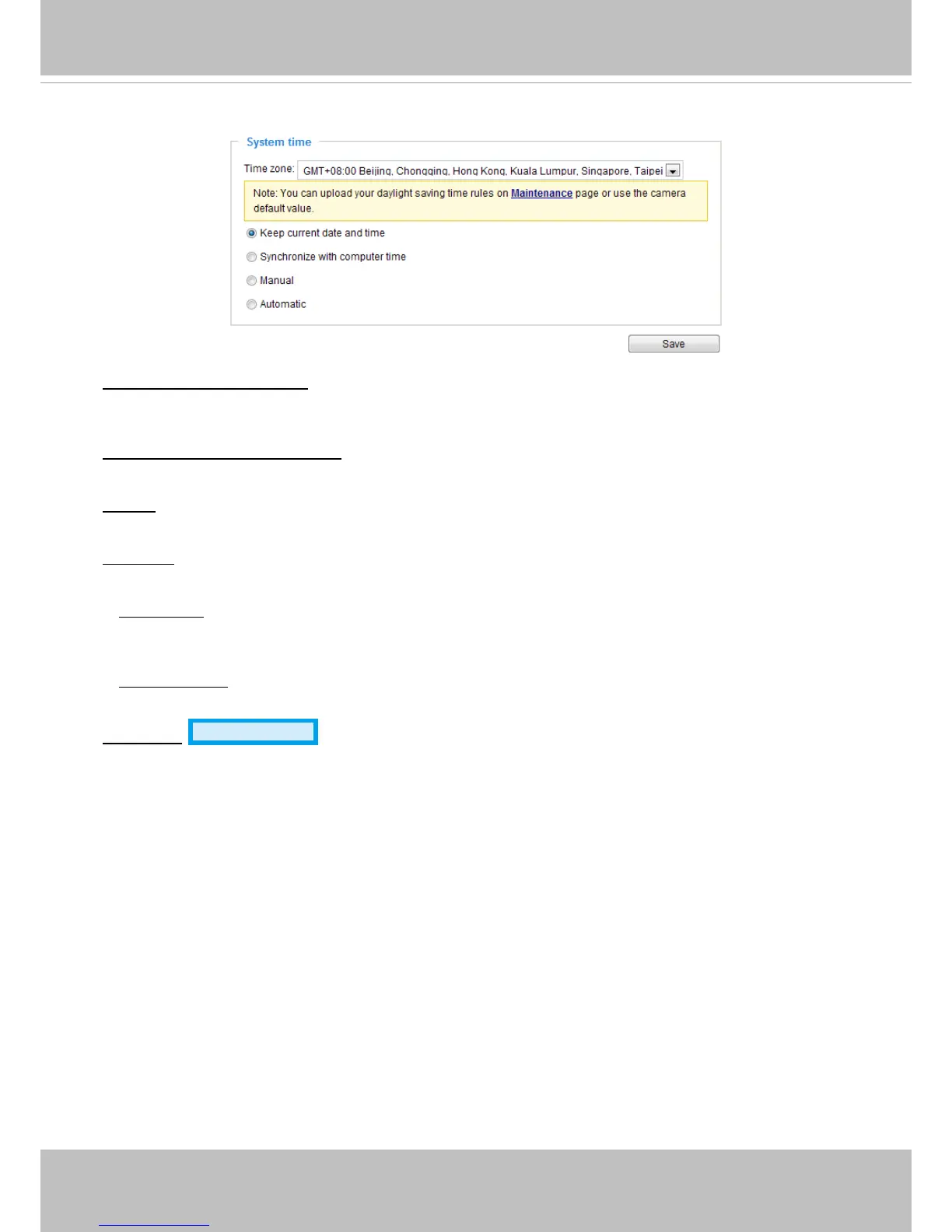 Manual: The administrator can enter the date and time manually. Note that the date and time format are