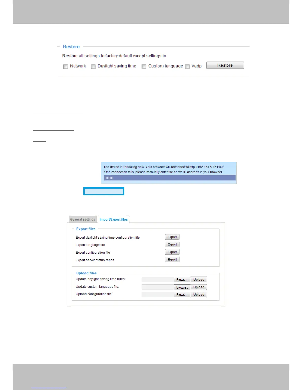 This feature allows you to Export / Update daylight saving time rules, custom language le, conguration
