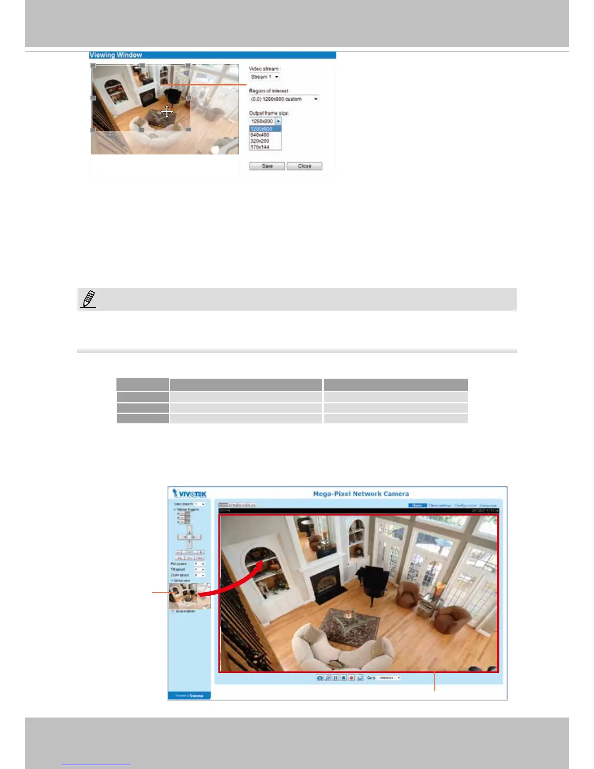 the Frame size of each video stream. Then you can go back to the home page to test the e-PTZ