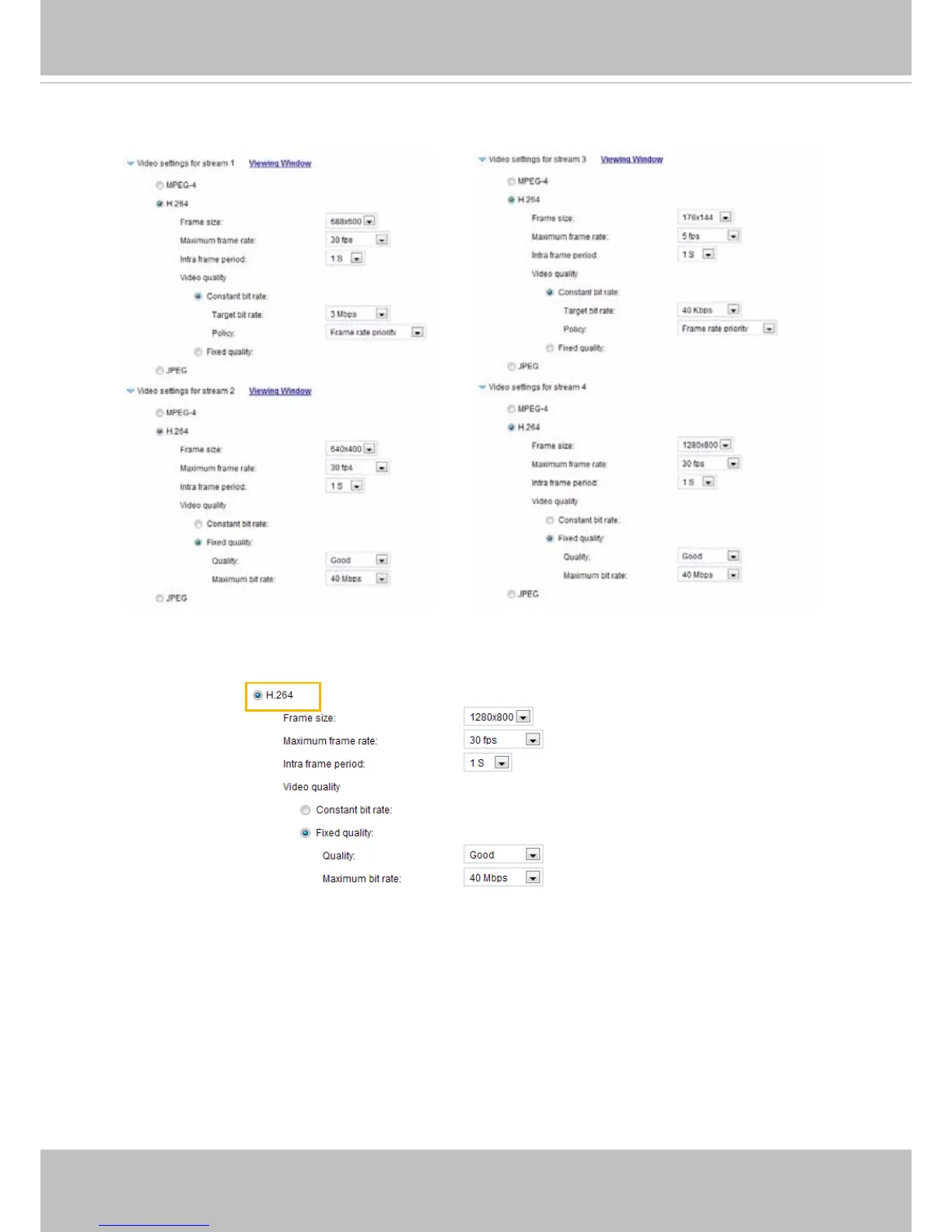 (Triple Codec) for real-time viewing. If the H.264 mode is selected, the video is streamed via RTSP