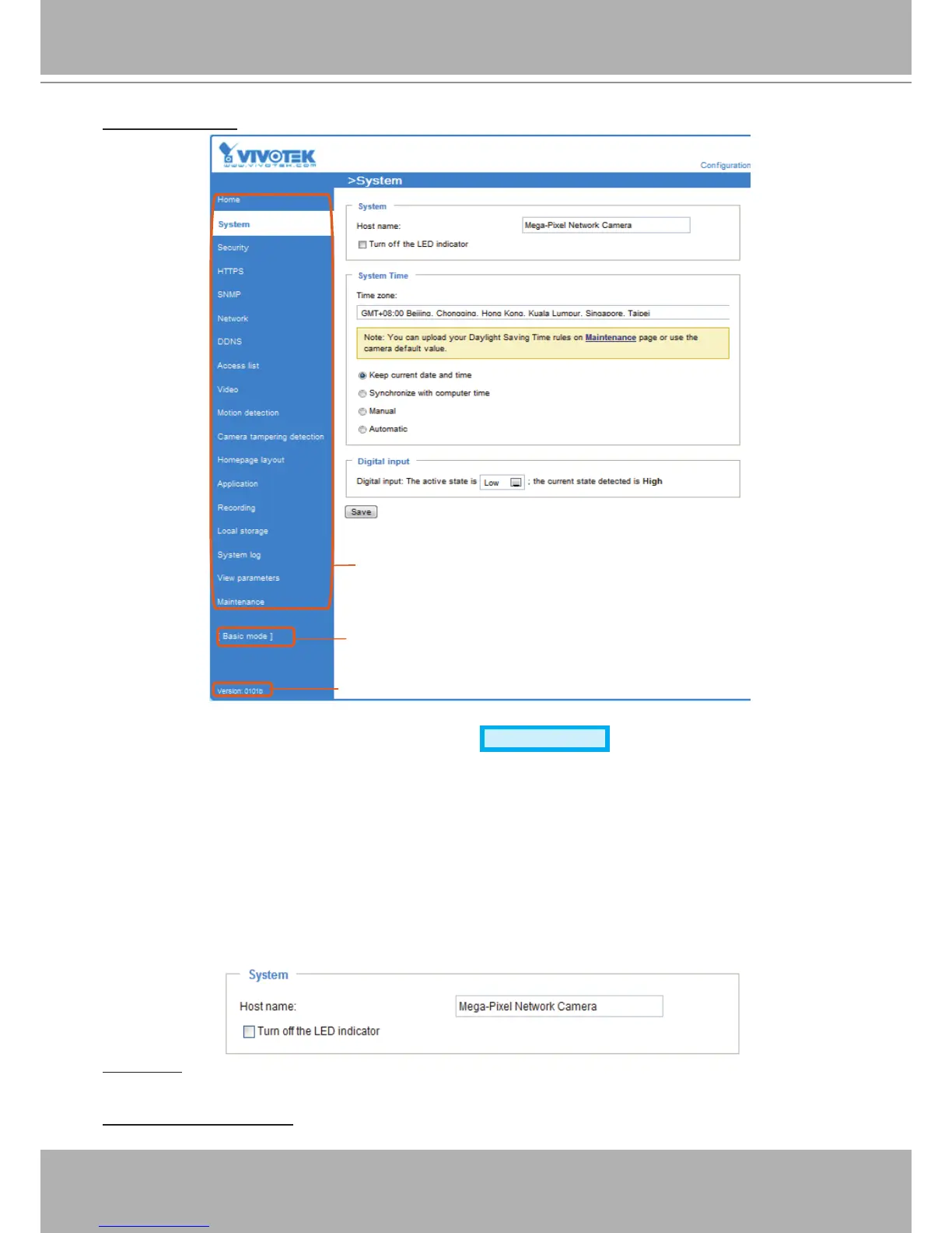 This section explains how to congure the basic settings for the Network Camera, such as the