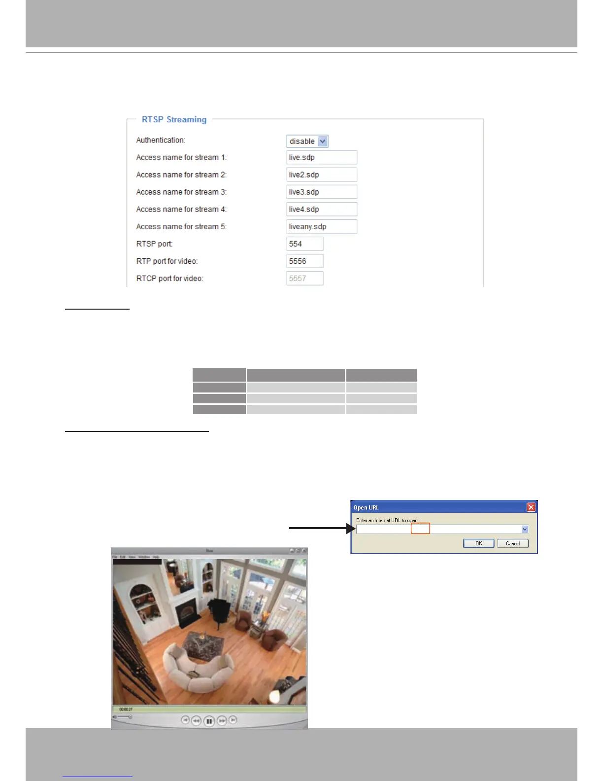 H�264 / MPEG-4 and use the following RTSP URL command to request transmission of the streaming