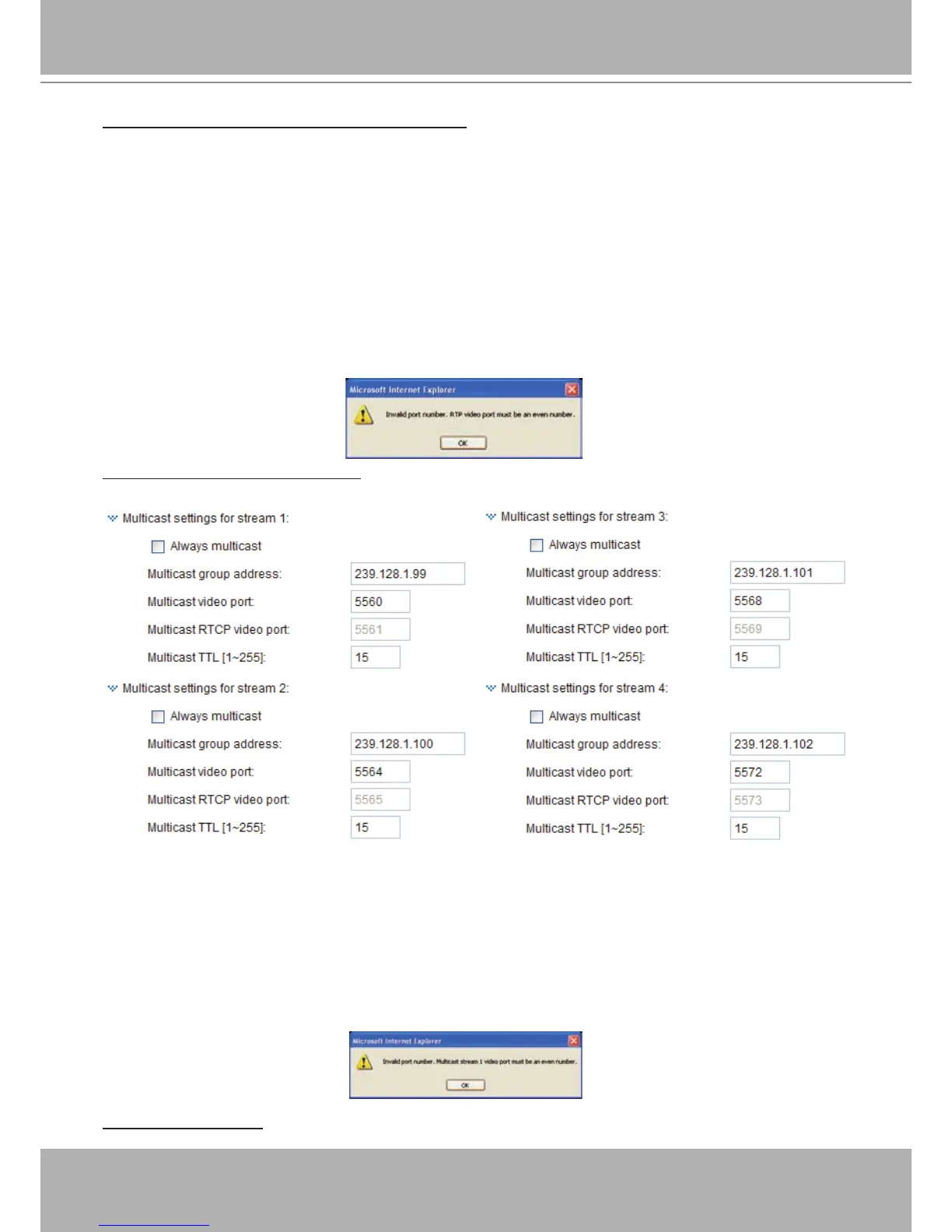If the multicast RTP video ports are incorrectly assigned, the following warning message will be