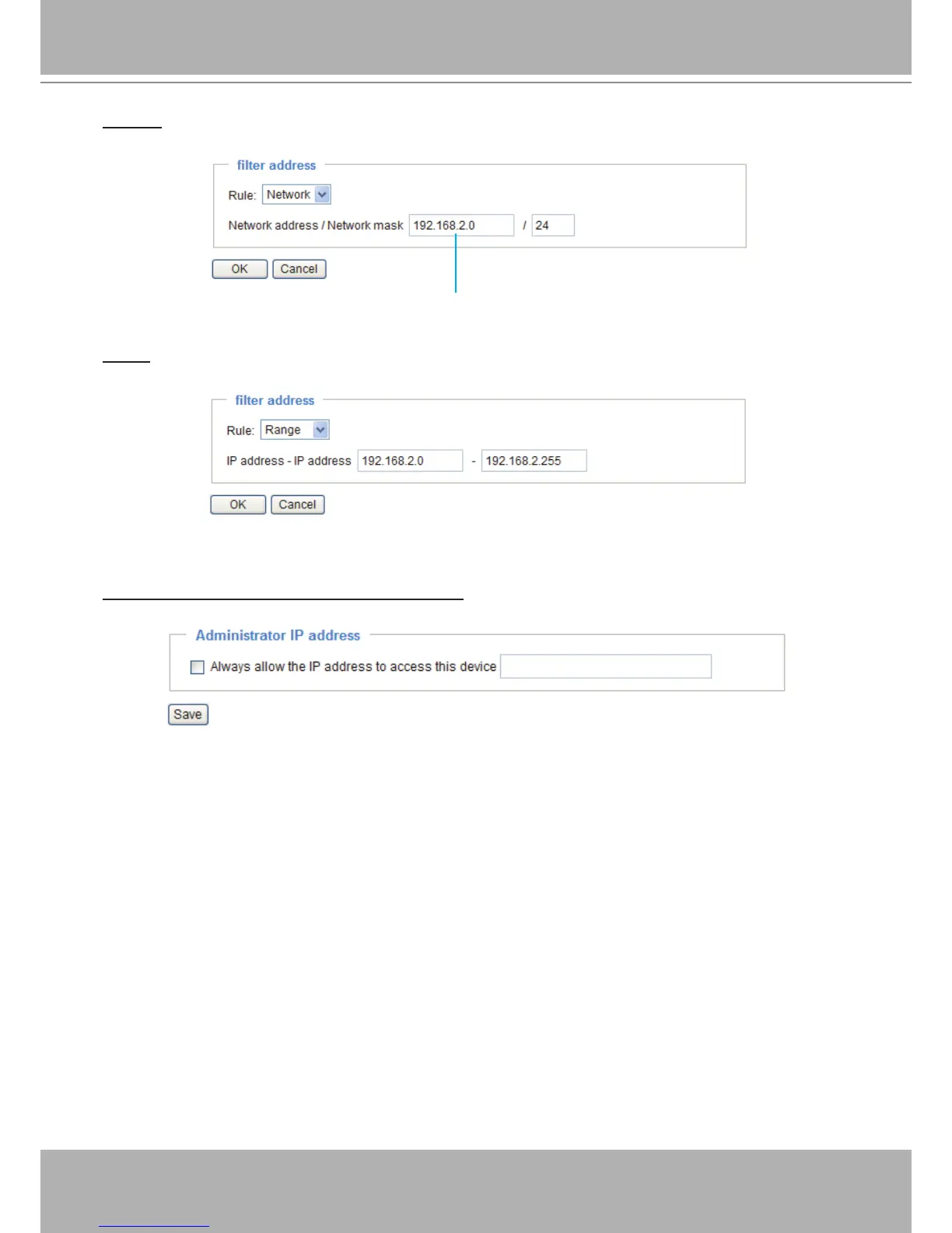 IP address in this eld to make sure the Administrator can always connect to the device.
