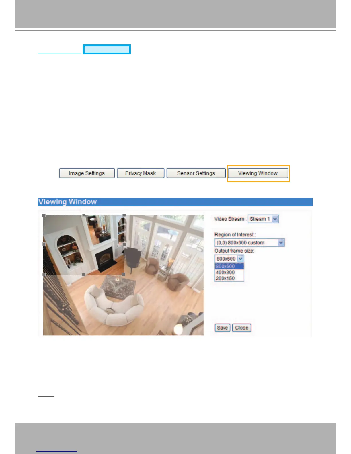 ■ Stream 2: Users can dene the "Region of Interest" (viewing region) and the "Output Frame Rate" (size