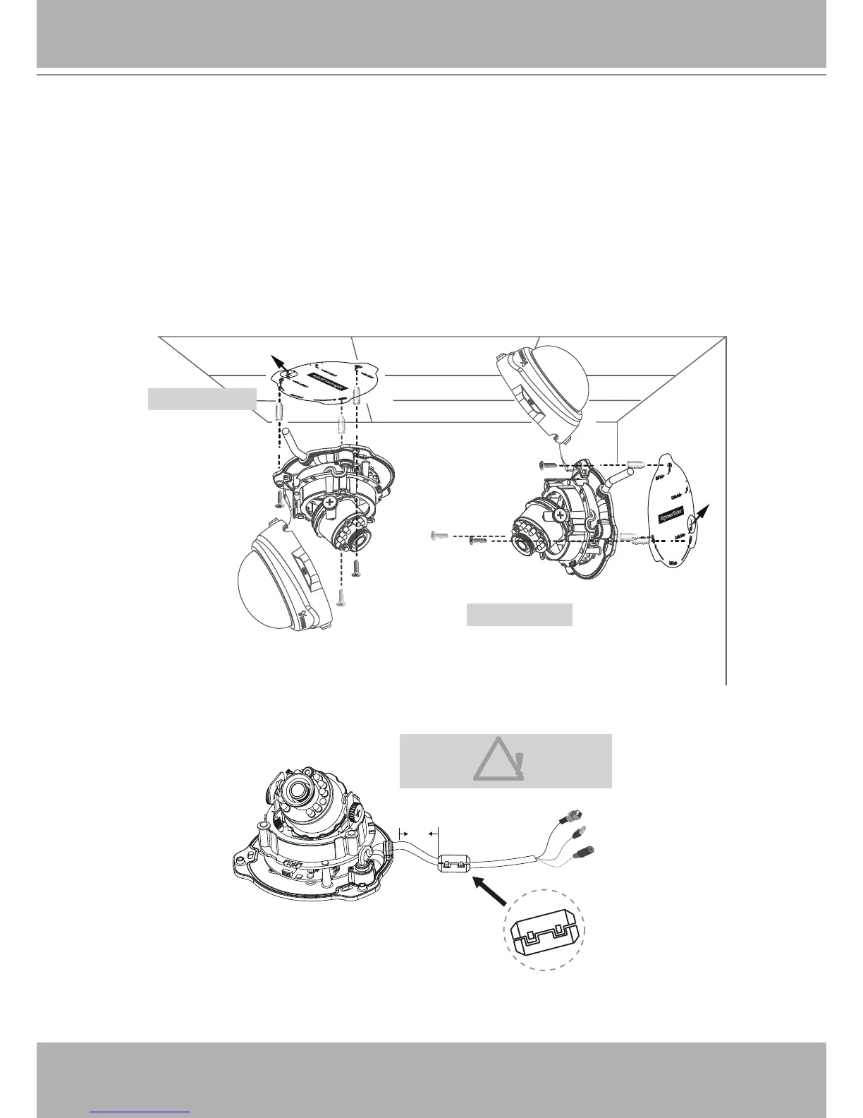 3� The Network Camera can be mounted with the cable routed through the ceiling/wall or from