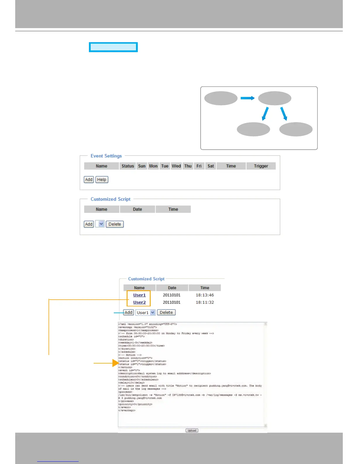 This section explains how to congure the Network Camera to responds to particular situations