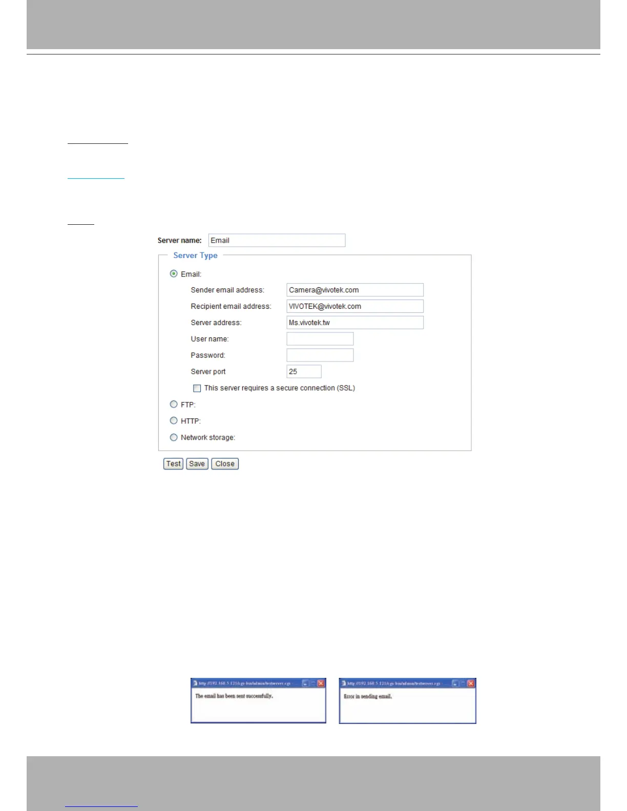 To verify if the email settings are correctly congured, click Test� The result will be shown in a pop-up
