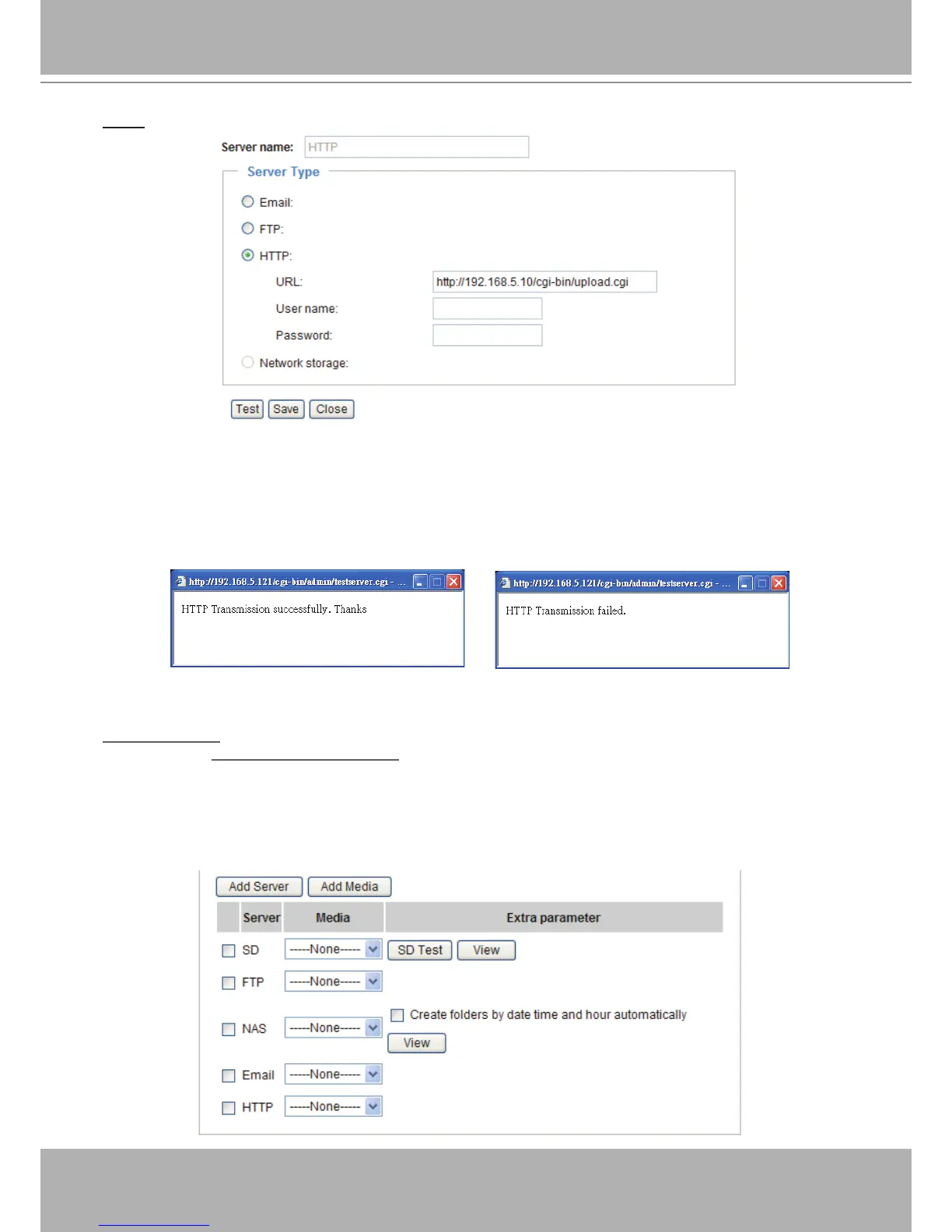 HTTP: Select to send the media les to an HTTP server when a trigger is activated.