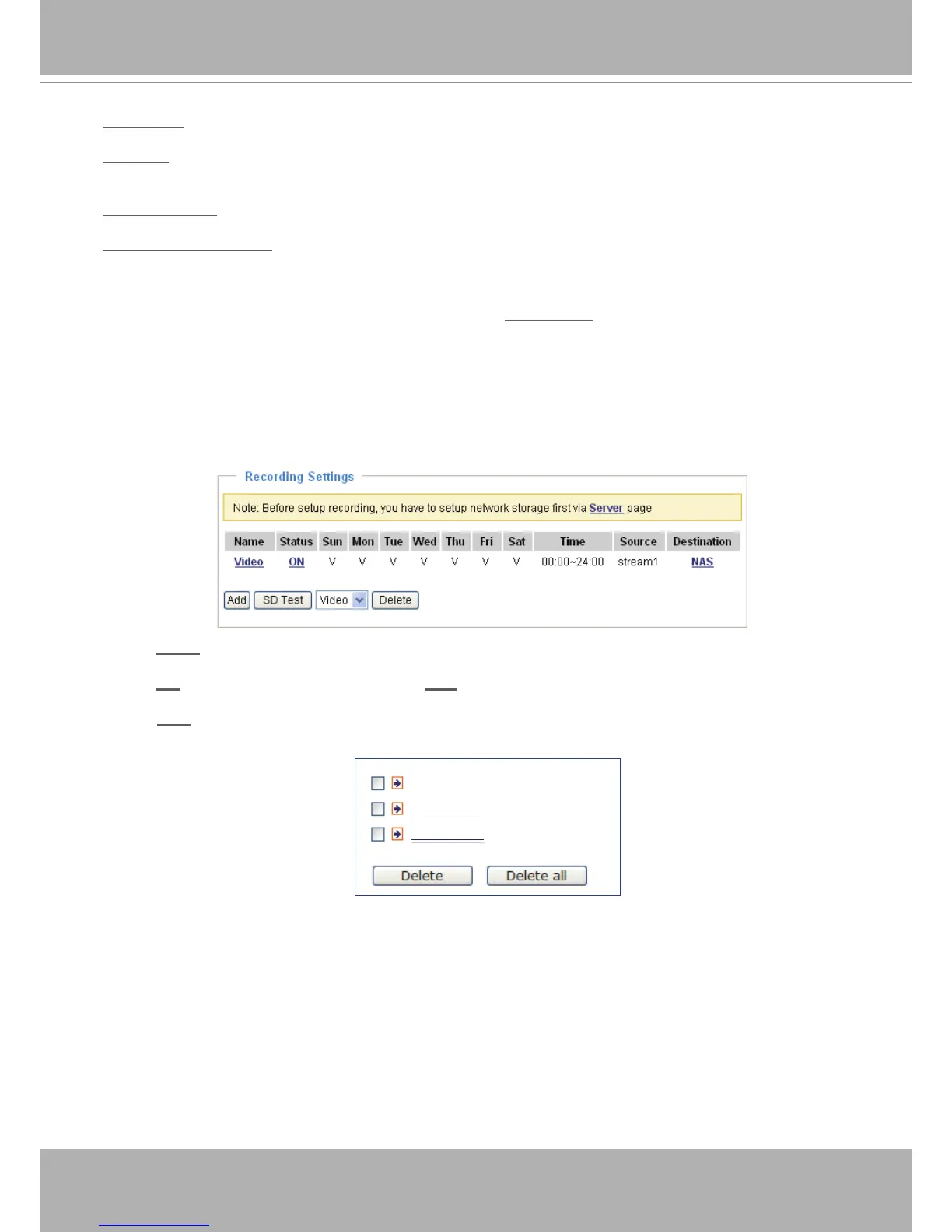 ■ Click Video (Name): Opens the Recording Settings page to modify�