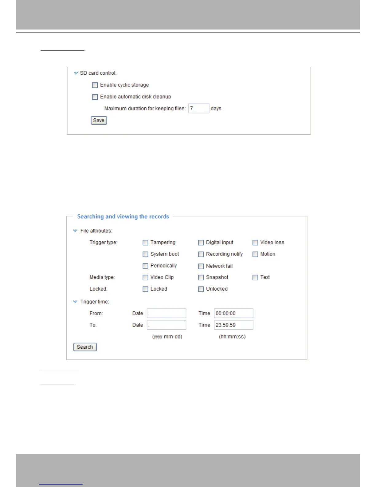 For example, if you enter “7 days”, the recorded les will be stored on the SD card for 7 days.